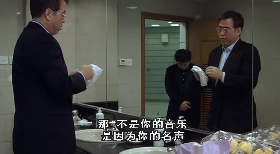 偏偏他们在厕所对话揭露出潜规则,余教授对小提琴手徒弟训斥,“观众给你鼓掌,不是因为你的音乐,而是为你名声,我也成了你的演员!想要一直成功?快走吧,记者都在等你”,他瞬间道破了任何成功的潜规则——得懂要演戏作秀!