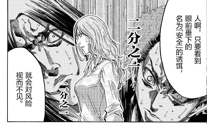 这里再啰嗦两句:漫画并不只描写那些刺激游戏,有非常大的篇幅描写了各种人物的成长、感情、自我认知。尤其是主角有栖,反反复复的心态变化,当你看完整个漫画会非常有正能量。